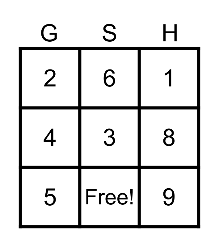 This bingo card has 10 words: Free!, 1, 2, 3, 4, 5, 6, 7, 8 and 9.