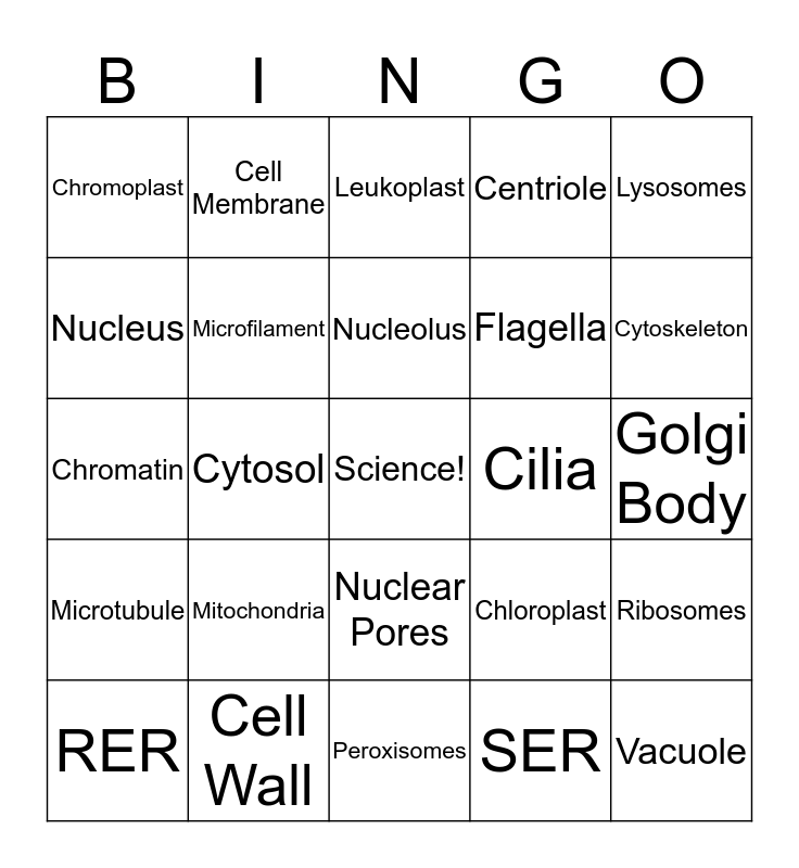 Suzuki Book 2 Bingo | Types of Cells | Specialized Cell Bingo | Organelles | Organelles