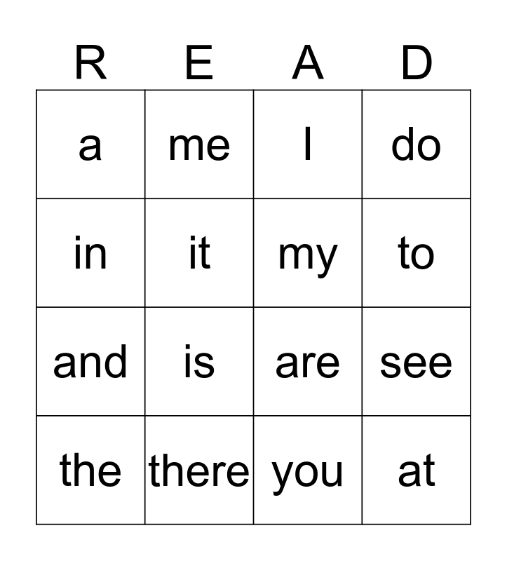 This bingo card has a free space and 15 words: the, at, I, a, to, in, is, you, it, and, see, do, my, me and there.
