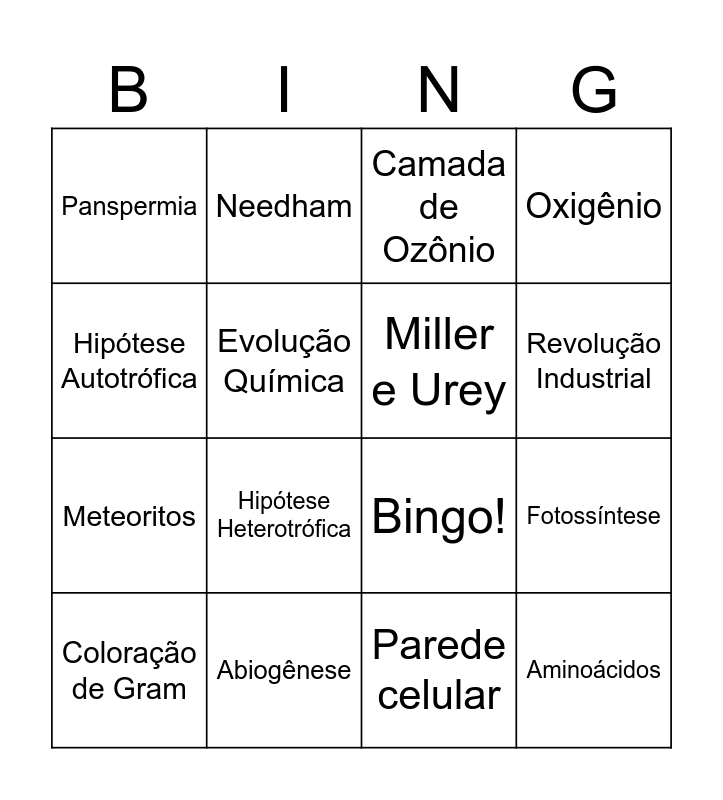BINGO - ORIGEM DA VIDA | Bingo de biologia | Lange | Nisa bingo | A PESQUISA CIENTÍFICA HOJE