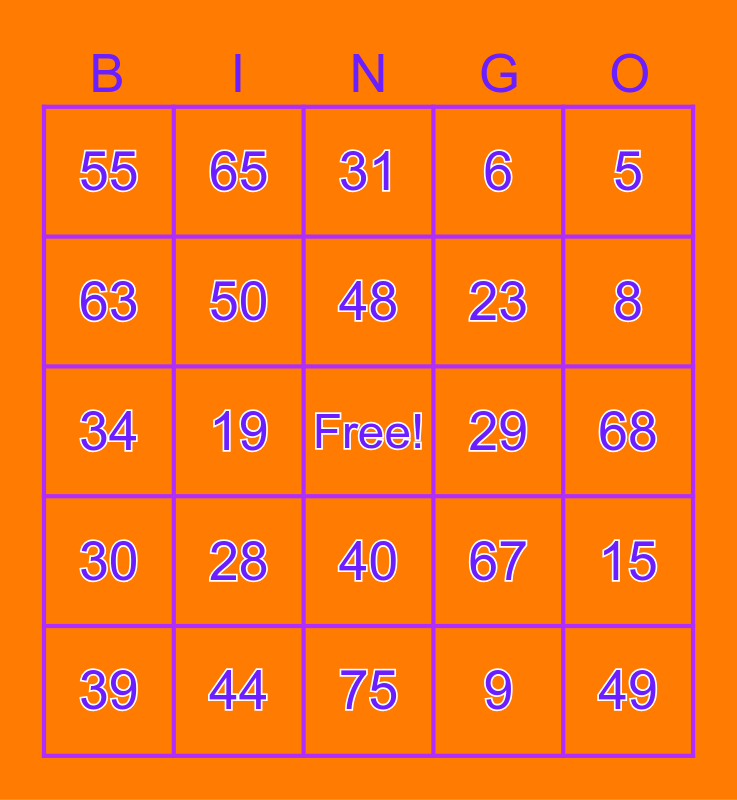 This bingo card has a free space and 75 words: 1, 16, 31, 46, 61, 2, 17, 32, 47, 62, 3, 18, 48, 63, 4, 19, 33, 49, 64, 5, 20, 34, 50, 65, 6, 21, 35, 51, 66, 7, 22, 36, 52, 67, 8, 23, 37, 53, 68, 9, 24, 38, 54, 69, 10, 25, 39, 55, 70, 11, 26, 40, 56, 71, 12, 27, 41, 57, 72, 13, 28, 42, 58, 73, 14, 29, 43, 59, 74, 15, 30, 44, 60, 75 and 45.