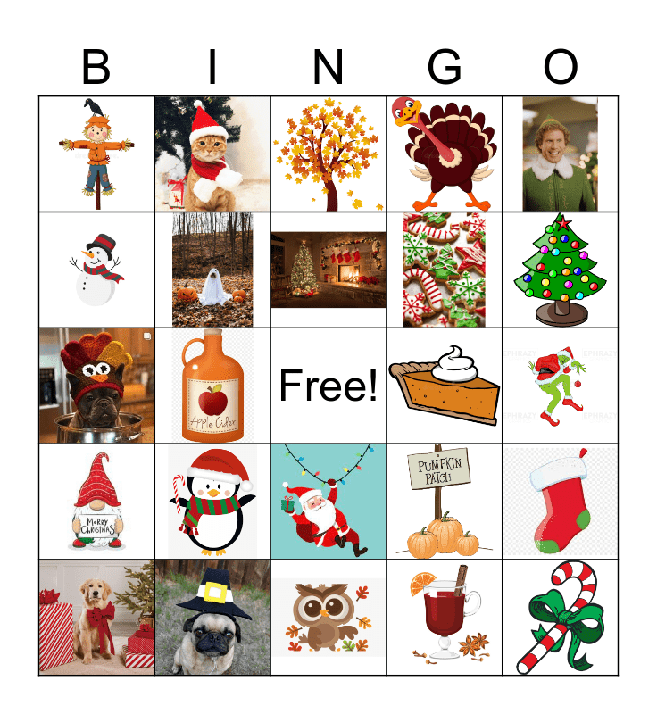 This bingo card has 31 images and a free space.