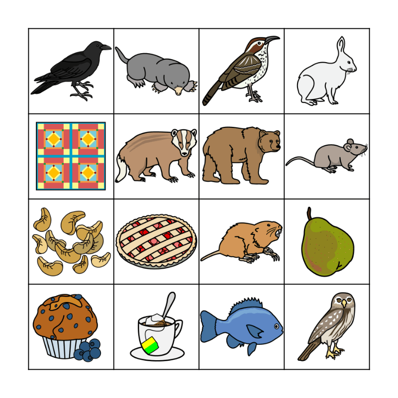 This bingo card has 16 images.