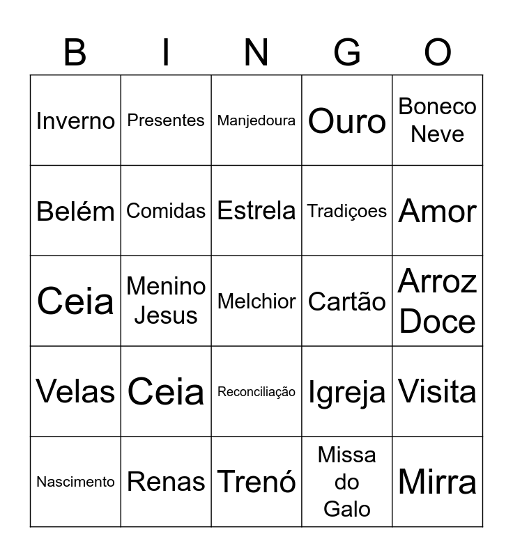 ⚠ This card has duplicate items: Natal (2), Família (2), Mirra (2), Sino (2)
