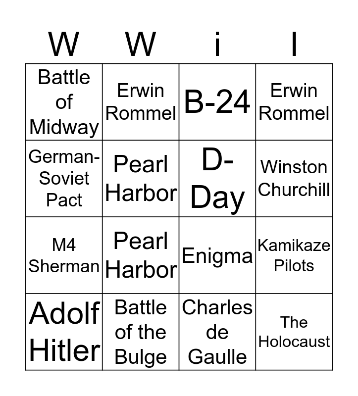 ⚠ This card has duplicate items: Erwin Rommel (2), Pearl Harbor (2)