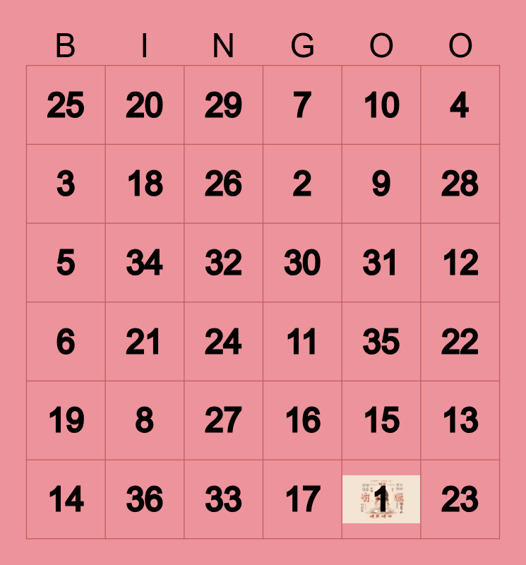 This bingo card has 1 images and 36 words: 16, 27, 17, 3, 6, 30, 18, 33, 10, 15, 28, 7, 13, 34, 2, 25, 19, 31, 5, 29, 32, 21, 11, 24, 35, 20, 9, 36, 26, 4, 23, 14, 22, 12, 8 and 1.