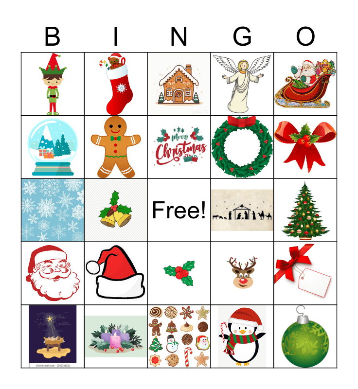 This bingo card has 30 images and a free space.