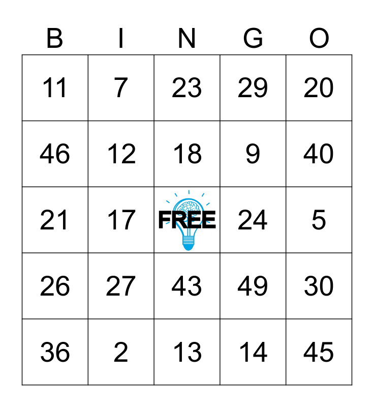 This bingo card has a free space and 50 words: 1, 2, 3, 4, 5, 6, 7, 8, 9, 10, 11, 12, 13, 14, 15, 16, 17, 18, 19, 20, 21, 22, 23, 24, 25, 26, 27, 28, 29, 30, 31, 32, 33, 34, 35, 36, 37, 38, 39, 40, 41, 42, 43, 44, 45, 46, 47, 48, 49 and 50.
