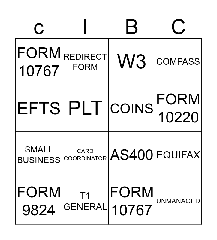 This bingo card has 87 words: OST, CREDIT, W3, WITHIN PROCEDURES, OUTSIDE PROCEDURES, TML CHART, RSQ MATRIX, SECURED, REDEMPTION, ISSUES, GMO, FORM 9824, FORM 1002, FORM 10767, FORM 10076, FORM 10220, QT630, GS104, QT105, QT315, RRM, TS2, AS400, CRDTGENE, CRDTGENF, CREDITLIM, CREDITTSF, CORPORATE, CORPGEN, MASTERCARD, VISA, CAPSTONE, KANA, EHP, PLT, FLT, CARD COORDINATOR, MCCRDTLIM, MCCRDTTSF, EQUIFAX, TRANSUNION, POI, NOA, T1 GENERAL, PAYSTUBS, EFTS, ECIF, REDIRECT FORM, PASSWORDS, TEAM LEADS, MANAGERS, MANAGED, UNMANAGED, PRIVATE BANKING, WOOD GUNDY, PERSONAL BANKING, SMALL BUSINESS, CORPORATE CLASSIC, BRANCH, COMPASS, COINS, PERCY, REFERRAL, QT110, FORM 10220, REDEMPTION, GMO, FORM 1002, FORM 9824, TML CHART, QT625, WITHIN PROCEDURES, W3, QT210, QT610, OUTSIDE PROCEDURES, ISSUES, QT310, FORM 10076, SPECIALISTS, RSQ MATRIX, OST, SUPPORT, QT620, SECURED, FORM 10767 and ESCALATIONS.