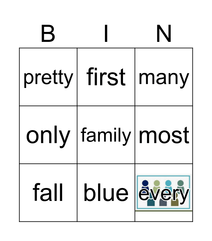 This bingo card has 3 images, a free space and 11 words: also, blue, every, fall, first, many, most, mountain, only, pretty and snowy.