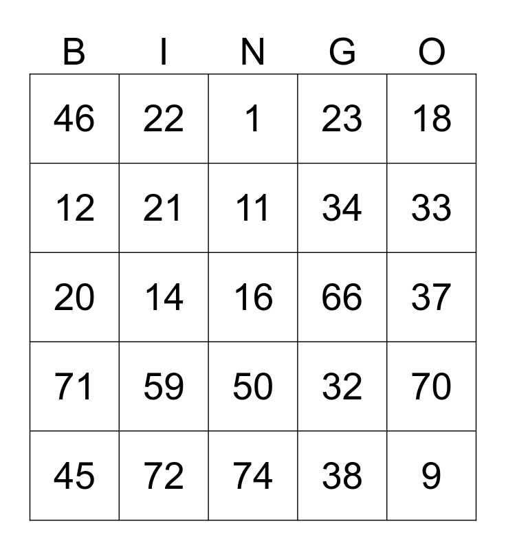 This bingo card has 77 words: Free!, 0, 1, 2, 3, 4, 5, 6, 7, 8, 9, 10, 11, 12, 13, 14, 15, 16, 17, 18, 19, 20, 21, 22, 23, 24, 25, 26, 27, 28, 29, 30, 31, 32, 33, 34, 35, 36, 37, 38, 39, 40, 41, 42, 43, 44, 45, 46, 47, 48, 49, 50, 51, 52, 53, 54, 55, 56, 57, 58, 59, 60, 61, 62, 63, 64, 65, 66, 67, 68, 69, 70, 71, 72, 73, 74 and 75.