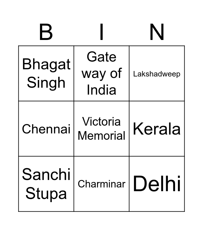 Landmarks of India | Independence Day Bingo | Independence Day Bingo | Independence Day Bingo | Independence Day Bingo