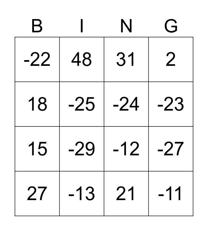 Proverbs | Integer Bingo | INTEGER BINGO | INTEGER BINGO | INTEGER BINGO
