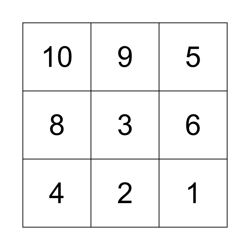 This bingo card has 11 words: 1, 2, 3, 4, 9, 5, 6, 7, 8, 10 and 0.