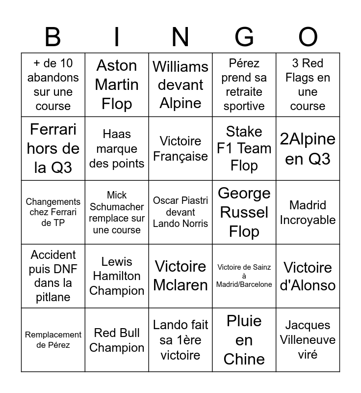 Bingo sans titre | Gp F1 | F1 2025 Fun Bingo | Bingo F1 2023 | Bingo F1 2023