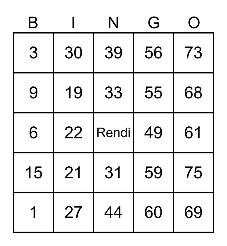 This bingo card has a free space and 24 words: 1, 21, 33, 60, 73, 3, 30, 39, 49, 61, 6, 19, 59, 75, 9, 27, 44, 56, 68, 15, 22, 31, 55 and 69.