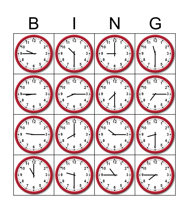 Telling Time Bingo Card