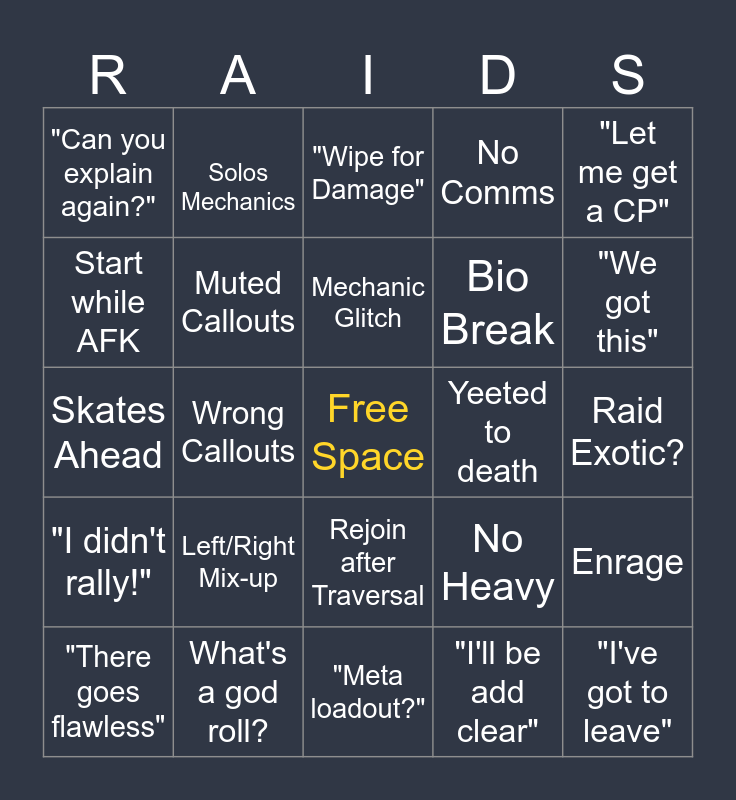 Raid Night Bingo | Hiring Bingo | LFG Adventures Garden | D31 bingo | LFG Vow of the Disciple
