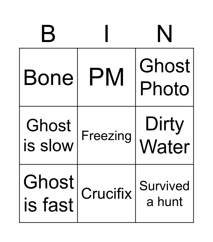 Phasmophobia | Onis Phasmaphobia Bingo | Phasmophobia Bingo | Phasmophobia Bingo | DEANO Phasmo Bingo
