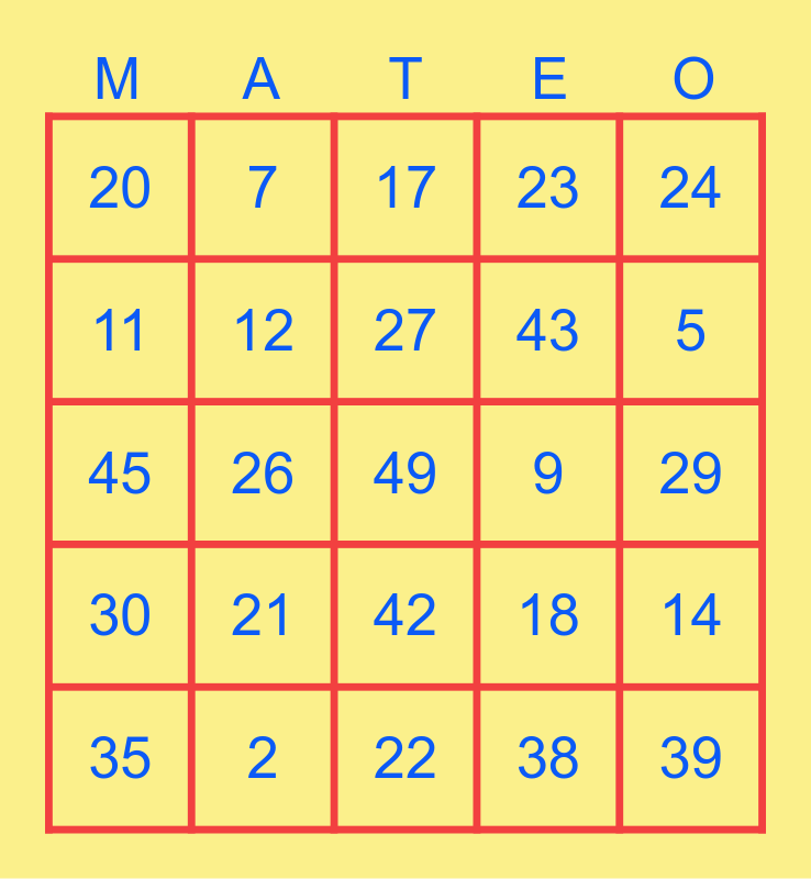 This bingo card has a free space and 48 words: 1, 2, 3, 4, 5, 6, 7, 8, 9, 10, 11, 12, 13, 14, 15, 16, 17, 18, 19, 20, 21, 22, 23, 24, 25, 26, 27, 28, 29, 30, 31, 32, 33, 34, 35, 36, 37, 38, 39, 40, 41, 42, 43, 44, 45, 46, 47 and 48.