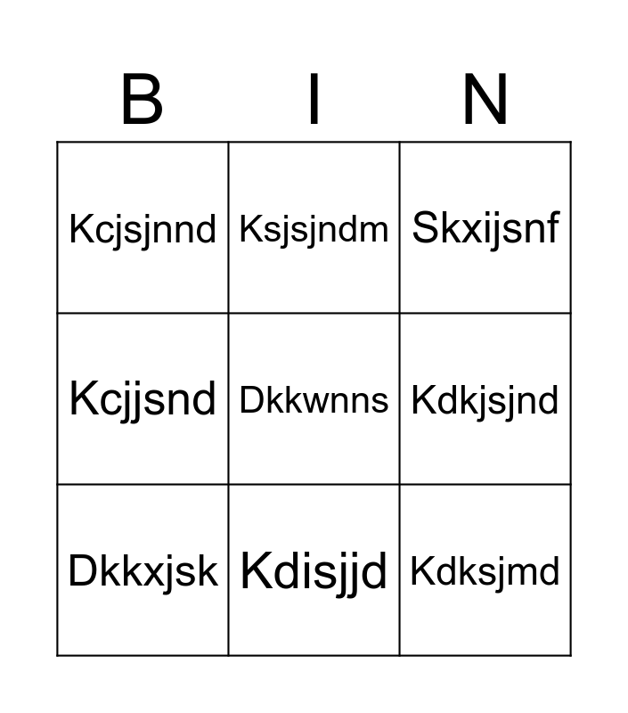 This bingo card has 17 words: Jsjjsn, Ckskjci, Skxijsnf, Kcjsjnnd, Dkdknd, Kcjjsnd, Disney, Dkkxjsk, Kdisjjd, Kdkjsjnd, Ksksnsn, Skksksn f, Dkkwnns, Ksjsjndm, Kdksjmd, Kxjjsnd and Kdksnnd.