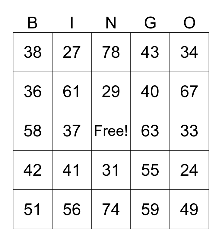 This bingo card has a free space and 65 words: 21, 22, 23, 24, 25, 26, 27, 28, 29, 30, 31, 32, 33, 34, 35, 36, 37, 38, 39, 40, 41, 42, 43, 44, 45, 46, 47, 48, 49, 50, 51, 52, 53, 54, 55, 56, 57, 58, 59, 60, 61, 62, 63, 64, 65, 66, 67, 68, 69, 70, 71, 72, 73, 74, 75, 76, 77, 78, 79, 80, 81, 82, 83, 84 and 85.