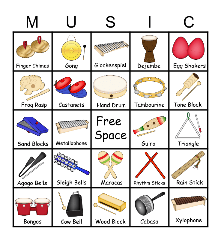 Classroom Instrument Bingo Card