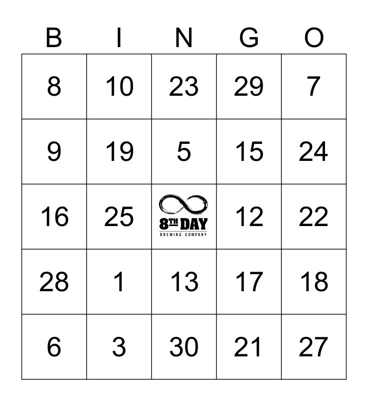 This bingo card has a free space and 24 words: 1, 3, 5, 6, 7, 8, 9, 10, 12, 13, 15, 16, 17, 18, 19, 21, 22, 23, 24, 25, 27, 28, 29 and 30.
