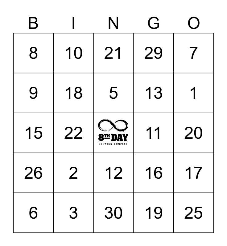 This bingo card has a free space and 24 words: 2, 3, 5, 6, 7, 8, 9, 10, 11, 12, 13, 15, 16, 17, 18, 19, 20, 21, 1, 22, 25, 26, 29 and 30.
