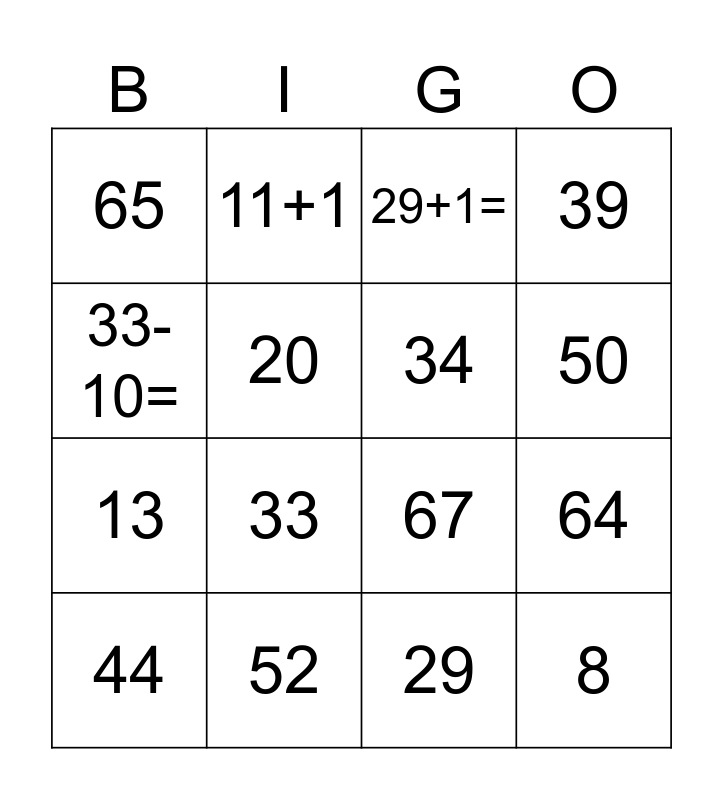 This bingo card has 76 words: 22+1=, 45+1=, 29+1=, 19+10=, 13+10=, 16-10=, 27-1=, 16-10=, 34-1=, Free!, 20-1=, 15-1=, 33-10=, 11+1, 30-1=, 13+1=, 19, 33, 49, 64, 5, 20, 34, 50, 65, 6, 21, 35, 51, 66, 7, 22, 36, 52, 67, 8, 23, 37, 53, 68, 9, 24, 38, 54, 69, 10, 25, 39, 55, 70, 11, 26, 40, 56, 71, 12, 27, 41, 57, 72, 13, 28, 42, 58, 73, 14, 29, 43, 59, 74, 15, 30, 44, 60, 75 and 45.