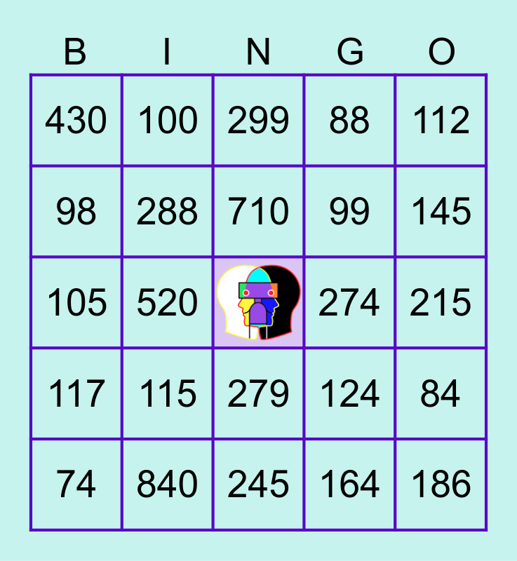 This bingo card has a free space and 30 words: 840, 710, 520, 454, 430, 299, 288, 279, 274, 245, 215, 186, 164, 160, 145, 129, 124, 117, 115, 112, 105, 102, 100, 99, 98, 88, 84, 74, 710 and 72.