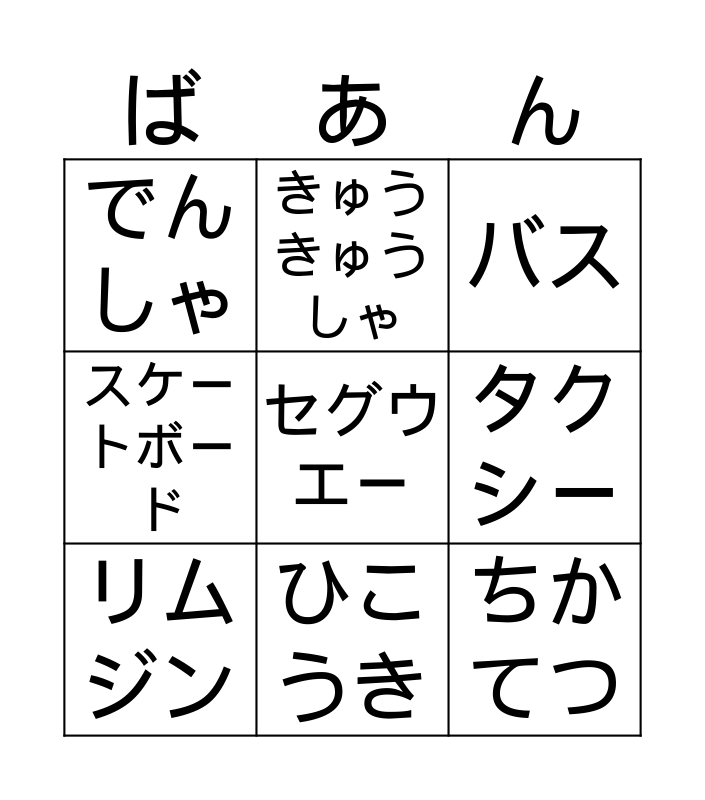 トラックドライバのビンゴ | Japanese BINGO! | 仕事 | Y5/6 (6-10) | 小さい や ゆ よ