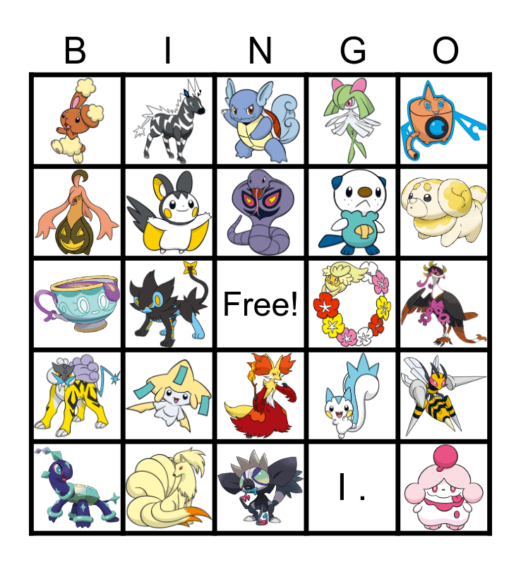 This bingo card has 24 images, a free space and 1 words: I ..