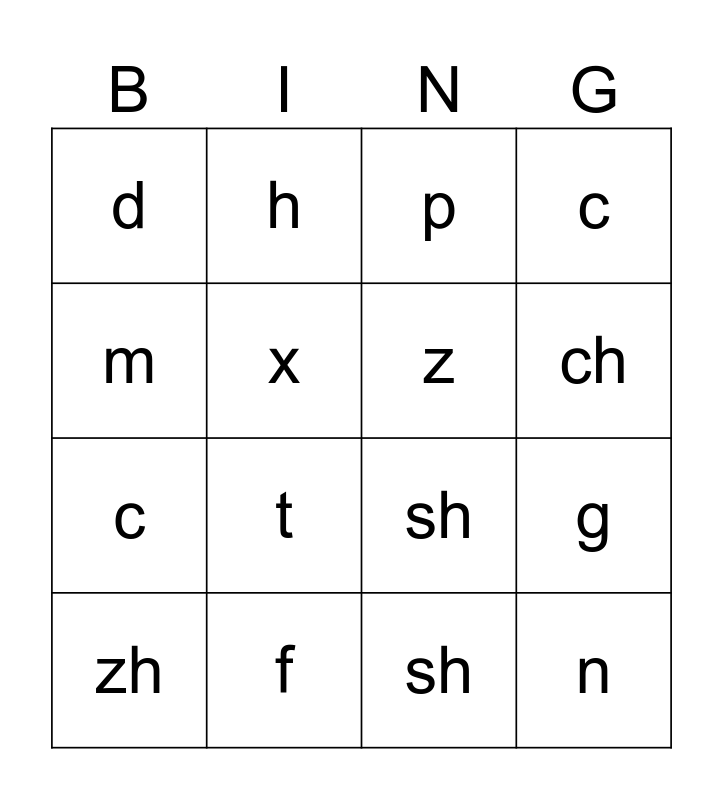 This bingo card has 37 words: r, t, b, z, k, d, ch, l, m, q, g, c, zh, sh, x, n, b, p, m, f, d, t, n, l, g, k, h, j, q, x, zh, ch, sh, r, z, c and s.