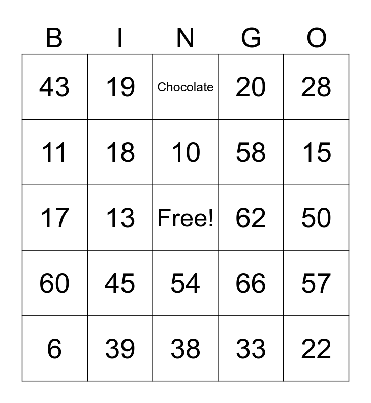 This bingo card has a free space and 74 words: Easter Bunny, Easter Egg, Chocolate, 1, 2, 3, 4, 5, 6, 7, 8, 9, 10, 11, 12, 13, 14, 15, 16, 17, 18, 19, 20, 21, 22, 23, 24, 25, 26, 27, 28, 29, 30, 31, 32, 33, 34, 35, 36, 37, 38, 39, 40, 41, 42, 43, 44, 45, 46, 47, 48, 49, 50, 51, 52, 53, 54, 55, 56, 57, 58, 59, 60, 61, 62, 63, 64, 65, 66, 67, 68, 69, 70 and Egg Hunt.