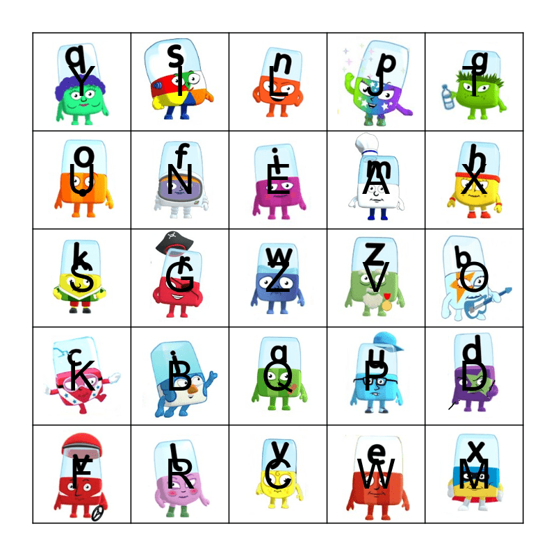 This bingo card has 26 images and 26 words: Q, W, E, R, T, Y, U, I, O, P, A, S, D, F, G, H, J, K, L, Z, X, C, V, B, N and M.