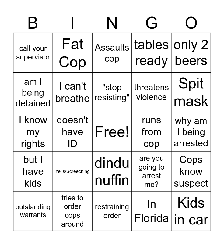 Cop Arrest Bingo | Cop Arrest Bingo | Cop Arrest Bingo | Cop Bodycam Bingo | Cop Bodycam Bingo