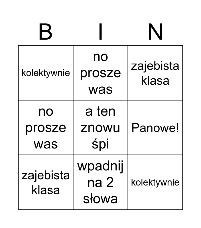 ⚠ This card has duplicate items: kolektywnie (2), Panowe! (2), no prosze was (2), zajebista klasa (2)