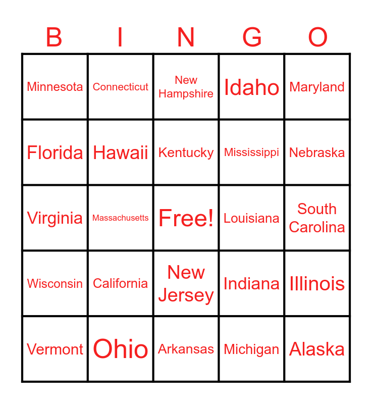 50 States Bingo
