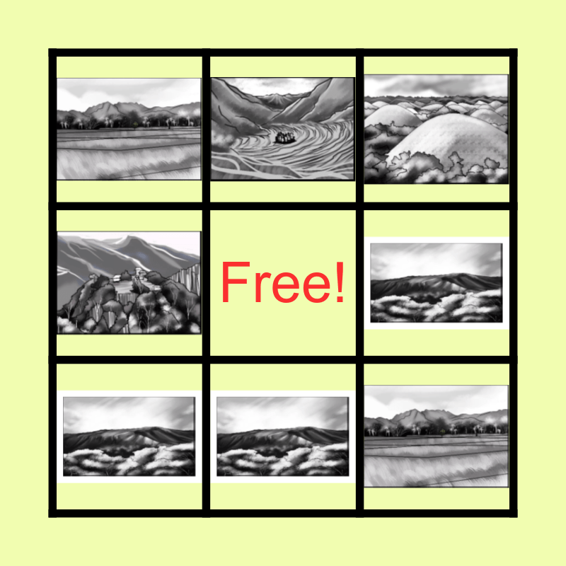 This bingo card has 9 images and a free space.