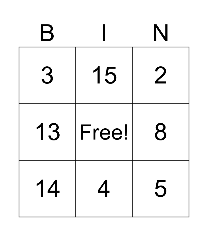 This bingo card has a free space and 15 words: test, 1, 2, 3, 4, 5, 6, 7, 8, 11, 12, 13, 14, 15 and 16.