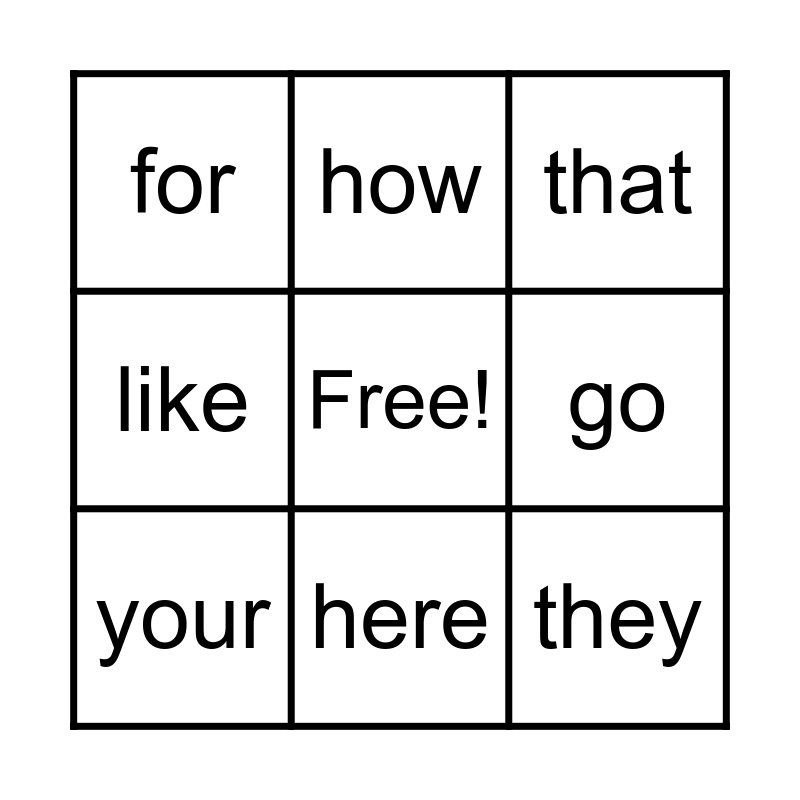 This bingo card has a free space and 45 words: all, he, are, and, what, who, that, do, they, look, like, there, my, you, we, play, good, put, one, said, how, a, from, for, want, some, the, find, come, to, this, no, give, I, little, have, me, with, see, here, go, now, she, your and is.