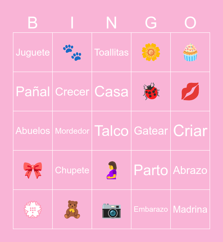 This bingo card has 91 words: Fotos, Sonrisa, 🤰, ⭐, 👑, Mama, Cuna, Papá, ✨, 🌈, Nacimiento, Risas, Emoción, Criar, Llanto, Casa, 💛, Ecografía, Antojos, 🤍, 👩❤️👨, 🍔, 📷, 🤱, Abuelos, 🧸, Baby shower, Amor, 🥰, 🌻, 🐴, Abrazo, 💜, 🎀, Juguete, 🌼, Toallitas, 👶, Mordedor, 💋, 💮, Pañal, 🐕, Bebé, Ternura, Parto, 🦋, Espera, Cochecito, 💙, 🎻, 🐞, 🦄, 🚜, Maternidad, Andador, Gatear, 🌷, Juegos, Recuerdos, Padrino, 🌸, Tia, Sonajero, Mimos, Babero, Alegría, Embarazo, Mamadera, Primeros pasos, Chupete, Talco, 💚, 🏡, 🐾, Crecer, Peluche, Ropa, 🧑🌾, Catalina, Madrina, 🧁, Pañalera, Sueño, Tío, Primeras palabras, 💕, Cariño, Familia, 🍼 and Momentos.