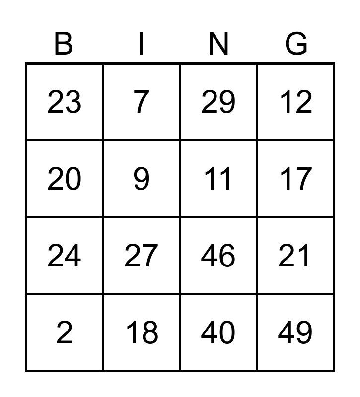 This bingo card has 50 words: 1, 2, 3, 4, 5, 6, 7, 8, 9, 10, 11, 12, 13, 14, 15, 16, 17, 18, 19, 20, 21, 22, 23, 24, 25, 26, 27, 28, 29, 30, 31, 32, 33, 34, 35, 36, 37, 38, 39, 40, 41, 42, 43, 44, 45, 46, 47, 48, 49 and 50.