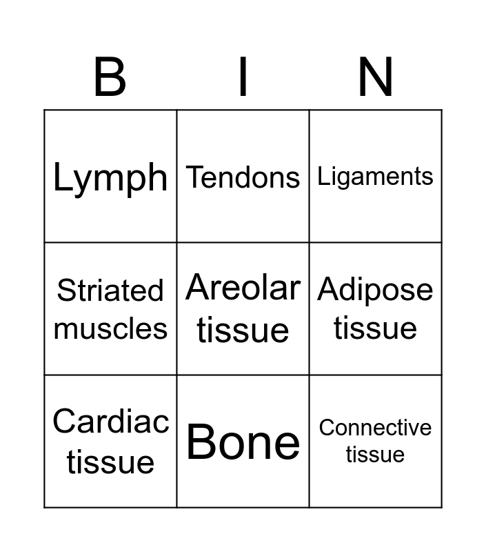 Bingo | Tissue | Tissues | TISSUE BINGO | TISSUE BINGO