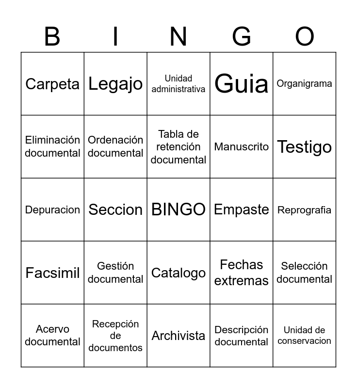 BINGO (Acuerdo 027 Del 2006) | BINGO ARCHIVISTICO | CONCEPTOS | TERMINOLOGIA | Conceptual Bingo