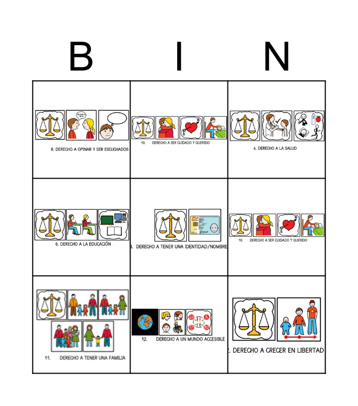 Derechos de los niños y niñas | BINGO DERECHOS Y RESPONSABILIDADES | Womans Rights Bingo (Spanish) | BINGO JURÍDICO | Carta de Derechos