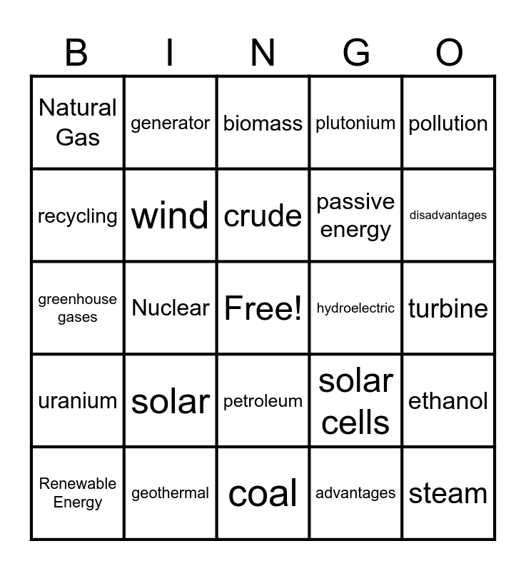 Energy Bingo! | Energy Renewable and nonrenewable | Energy Sources Bingo | Energy Sources Bingo | Lesson 8