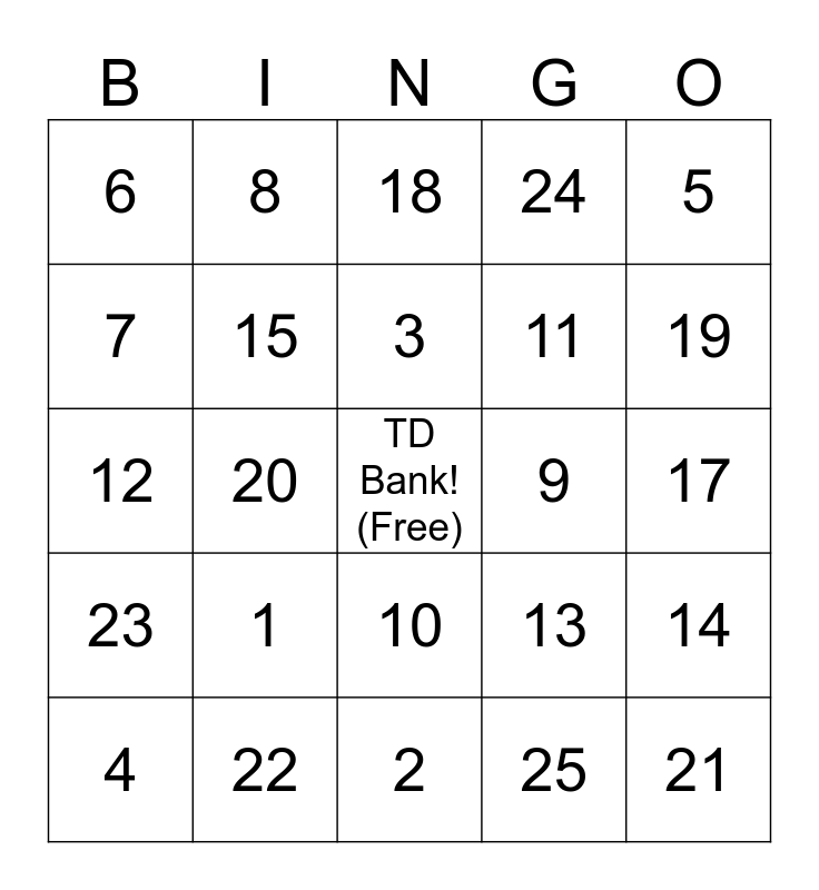 This bingo card has a free space and 25 words: 1, 2, 3, 4, 5, 6, 7, 8, 9, 10, 11, 12, 13, 14, 15, 16, 17, 18, 19, 20, 21, 22, 23, 24 and 25.