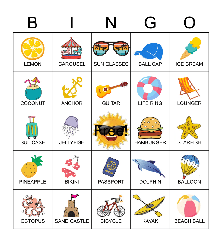 This bingo card has 49 images and a free space.